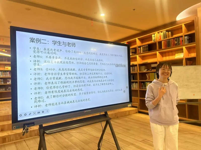 心理老師鄧秀齡圍繞 “溝通的原則與藝術(shù)”,結(jié)合校園案例開(kāi)展情景模擬。同學(xué)們踴躍發(fā)言,分享觀點(diǎn)。鄧?yán)蠋熡枰钥隙ǎc(diǎn)明共情式溝通要兼顧尊重與邊界感。大家通過(guò)角色扮演、話(huà)術(shù)演練,逐步掌握 “非評(píng)判傾聽(tīng)”“正向反饋” 等實(shí)用技巧。