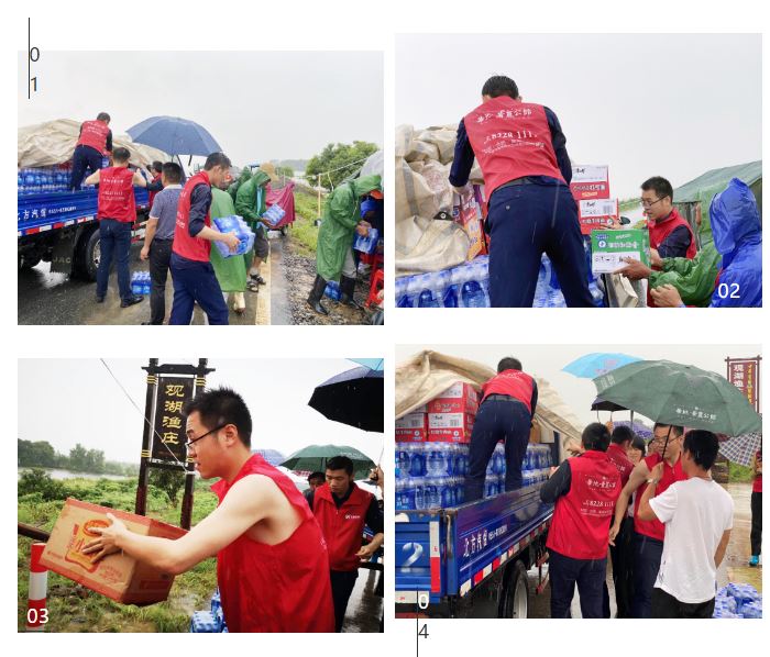 7月30日,華地集團防汛應急小組帶領4輛貨車組成的抗洪捐贈愛心車隊,滿載救災物資,奔赴合肥市蜀山區指定物資捐贈站開展慰問活動。