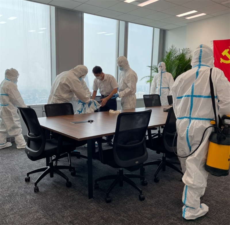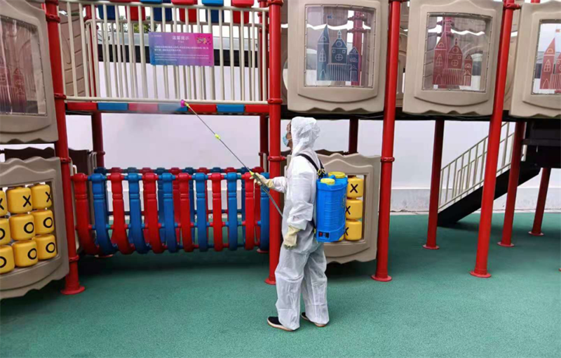 針對園區(qū)、案場、寫字樓、學(xué)校等多個項目,嚴(yán)格遵循防疫工作標(biāo)準(zhǔn),對電梯、樓道、垃圾桶、車庫、出入口、兒童設(shè)施等公共區(qū)域堅持每日進行全覆蓋、高頻次消毒,對商寫、學(xué)校等重點區(qū)域一天不低于兩次消毒作業(yè),不放過任何一個衛(wèi)生防疫死角。
